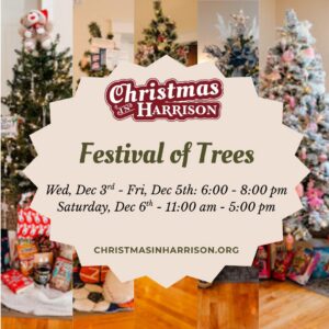 Visit our beautifully decorated display of creative trees at the Festival of Trees located at the Ronald St. John Community Center. Enter for a chance to win your favorite tree. Winners announced Saturday evening. There will be a Christmas bus doing a loop from the Harrison Boat Launch to the Festival of Trees on Saturday only from 10:00 am to 2:00 pm.